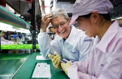تیم کوک، مدیر اپل، در کارخانۀ تولید محصولات اپل در چین