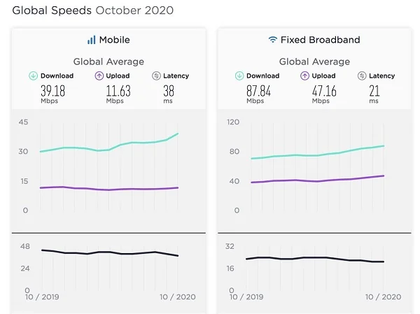 به گزارش خبرگزاری مهر به نقل از وب سایت اسپیدتست، جدیدترین گزارش سرعت اینترنت جهانی مربوط به اکتبر ۲۰۲۰ منتشر شده است.
