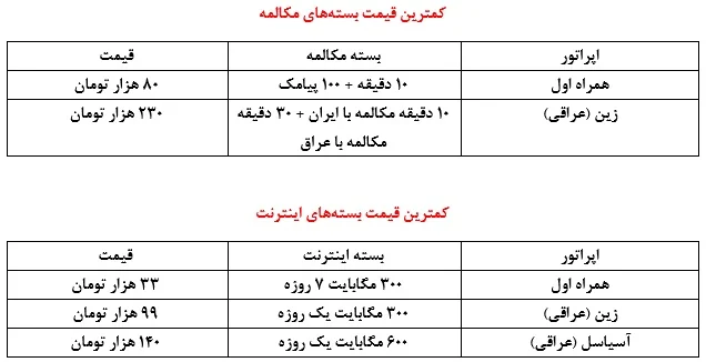 لذا برای رفع نگرانی افرادی که عازم کربلا هستند یا مقصد سفرشان به عراق در ایام اربعین است، اقدام به بررسی قیمتها و بستههای اپراتورهای ایرانی و عراقی کردیم تا ضمن معرفی بهترین و به صرفهترین بستههای مکالمه و اینترنت، به انتخاب سیمکارت مناسب از سوی زائران و متقاضیان کمک بهتری شود.