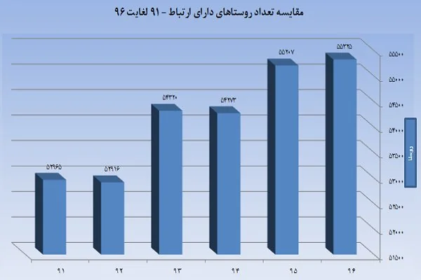 برمبنای آمار منتشر شده، در سال ۹۱ حدود ۵۲ هزار و ۹۰۰ روستا دارای ارتباط بود که در پایان سال ۹۶ این رقم به ۵۵ هزار و ۳۲۵ روستا رسیده است.