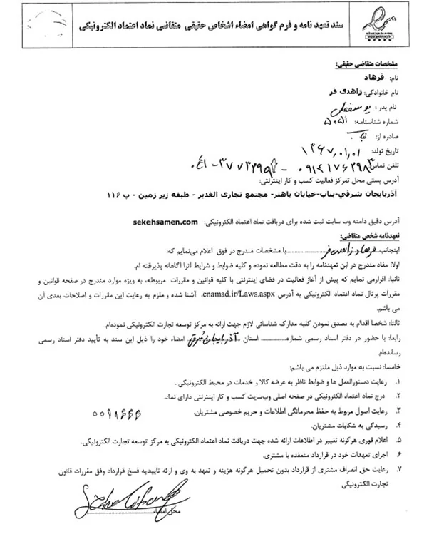 به گزارش روابط عمومی مرکز توسعه تجارت الکترونیکی، با توجه به اخبار منتشر شده در خصوص فعالیت های کسب و کار اینترنتی sekehsamen.com مواردی ذیل را به اطلاع مشتریان این کسب و کار می رساند: