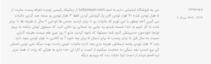کابر دیگری ذیل کمپین انتقاد از افزایش 40 درصدی قیمت پست در سال مهار تورم که در صفحه فارس من منتشر شده، نوشته است: مرسولهای را از شیراز به تهران ارسال کرده اما به جای سود زیان کرده است.