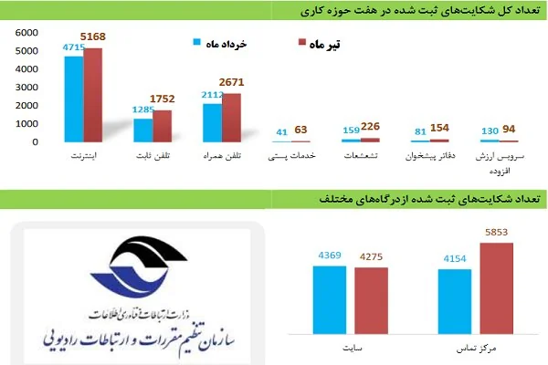 در همین حال آمارها نشان میدهد که تعداد کل شکایتهای ثبت شده در تیرماه نسبت به خرداد ماه سال جاری حدود ۱۹ درصد رشد داشته است که ۵۷.۸ درصد کل شکایات در تیرماه از درگاه سامانه سپاس ثبت شده است.