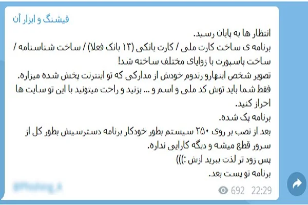مرکز ماهر با اشاره به انتشار باج افزار «Cybersccp» در کانال های تلگرامی فارسی زبان اعلام کرد: مشاهدات اخیر در فضای سایبری کشور مخصوصاً در پیامرسان تلگرام، حاکی از آن است که یک باجافزار از خانواده خطرناک شناخته شده HiddenTear با نام Cyber.exe در پوشش برنامهای کاربردی با ادعای ساخت تصویر جعلی کارت ملی، کارت بانکی، شناسنامه و پاسپورت در حال انتشار است.