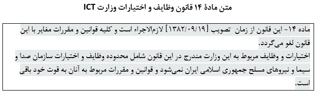 در حالی که ابهامات متعددی در مادۀ 14 قانون وظایف و اختیارات وزارت ICT موجود بودند و هنوز نیز موجودند: