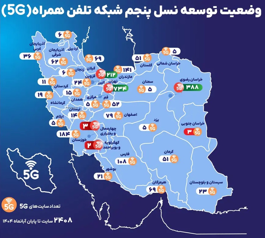 محمد حسن جوادزاده گفت: در حال حاضر استان های تهران، خراسان رضوی، قزوین، خوزستان و فارس بیشترین تعداد سایت های ۵G را دارا هستند.