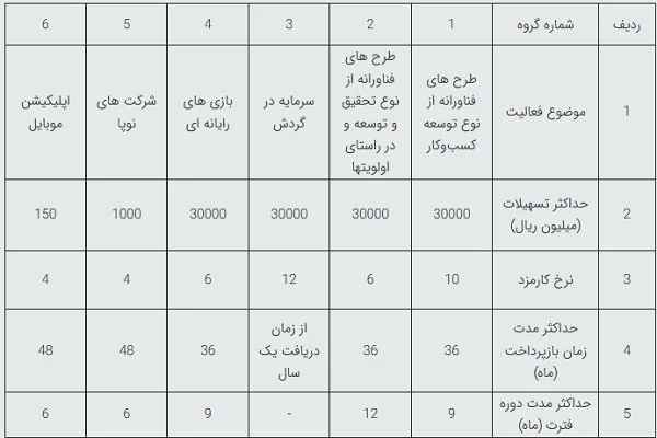 همچنین، طرح (پروژه) های تحقیقاتی منتهی به تولید نمونه صنعتی یا تولیدات آزمایشگاهی، آموزشی، توسعه ای اشتغال آفرین و نهادهای سرمایه گذاری خطر پذیر در قلمرو ارتباطات و فناوری اطلاعات، می توانند از وام وجوه اداره شده استفاده کنند.