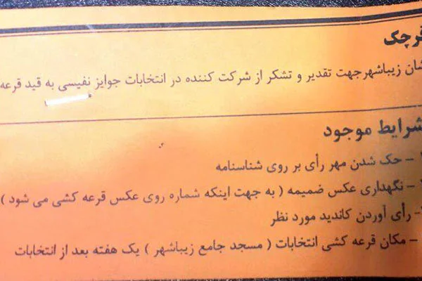 در مواردی در شهرستان قرچک، کاندیداها در تبلیغات خود از مردم خواسته اند که از برگه رای که به آن ها داده می شود عکس گرفته و در تلگرام ارسال کنند و در صورت رای آوردن کاندیدای مورد نظر قرعه کشی کرده و خودرو پراید و سکه جایزه می دهند.