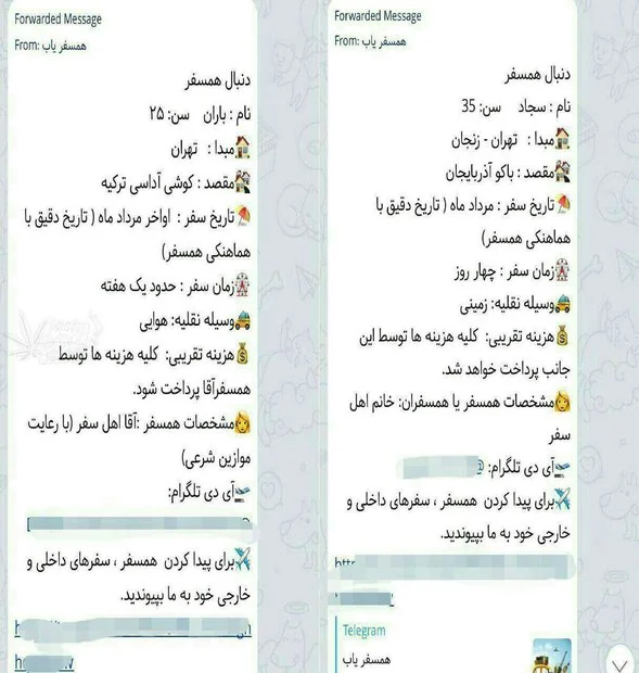 برخی درخواست‌ها در کانال‌های همسفریاب از دایره سفر عادی خارج است