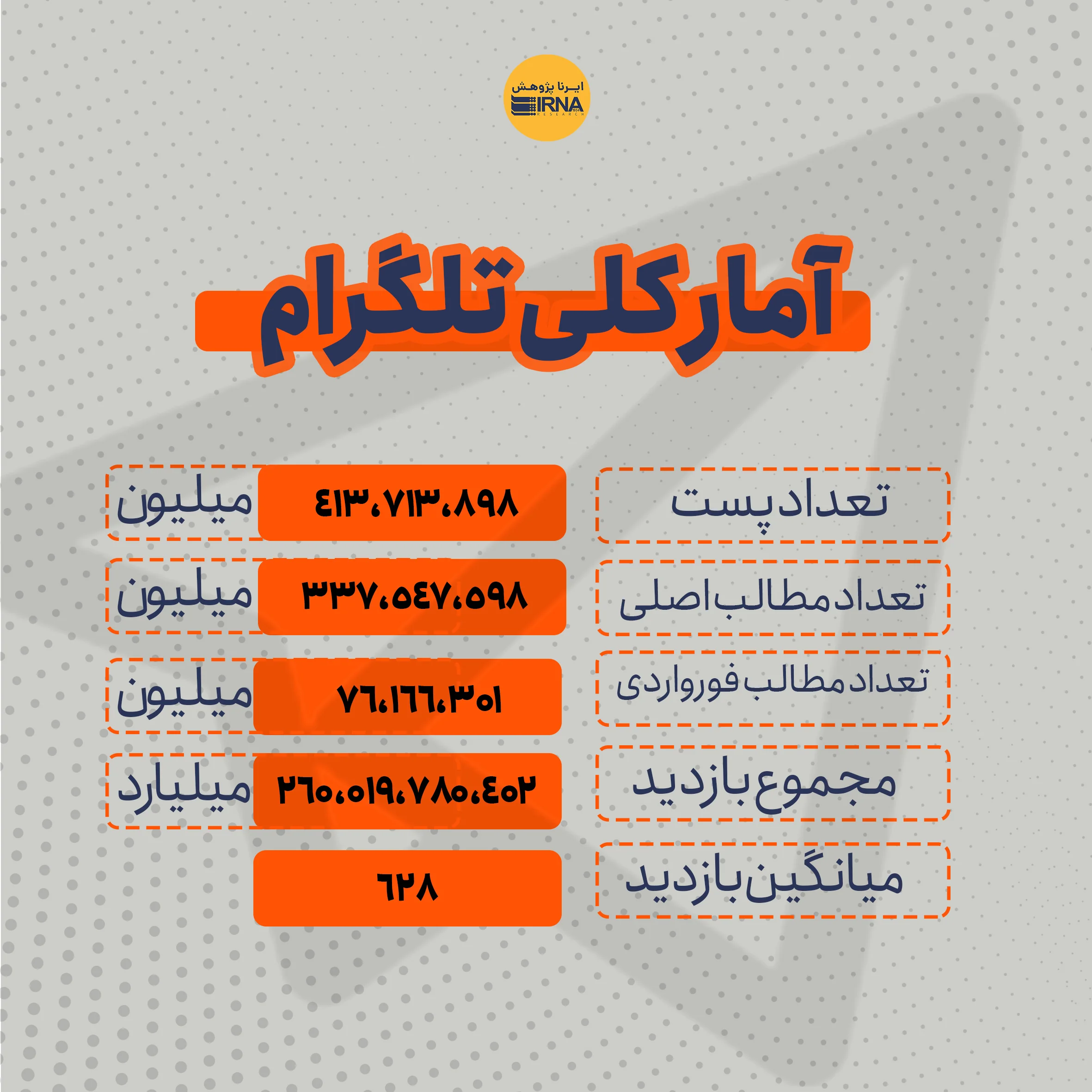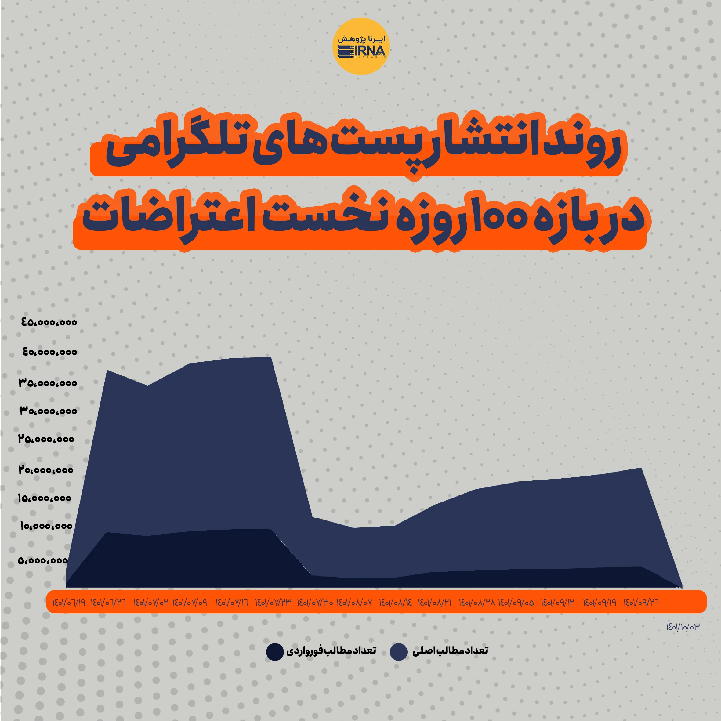 براساس دادههای استخراج شده در سامانه پایشگر شبکههای اجتماعی در بازه زمانی ۱۰۰ روزه نخست اعتراضات یعنی از ۲۵ شهریور تا ۳ دی ماه، ۳۳۷ میلیون پست تلگرامی و ۷۶ میلیون پست فوارواردی(در مجموع ۴۱۳ میلیون) منتشر شده که در مجموع ۲۶۰ میلیارد بازدید داشتهاند. میانگین بازدید پستها با این حساب، ۶۲۸ ویو محاسبه شده که نشان از توجه ویژه کاربران تلگرامی به اخبار کانالهای خبری این پلتفرم دارد.