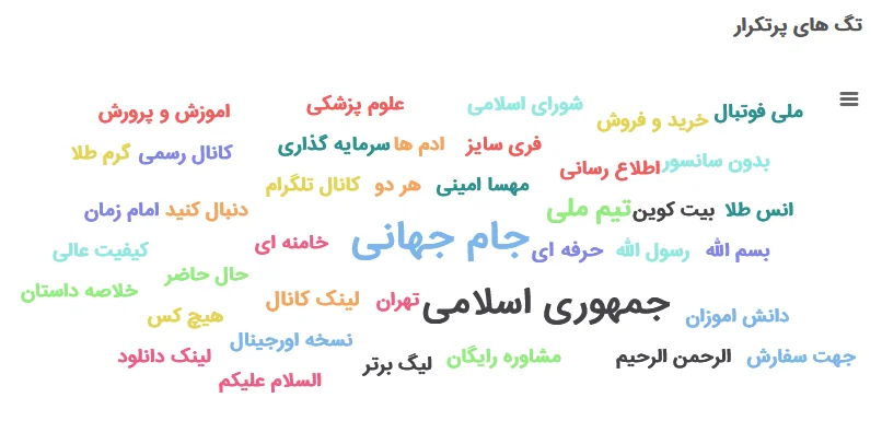 گراف ابرنمای زیر، پرتکرارترین واژگانی که در کل محتوا از سوی کانالهای تلگرامی به کار برده شده را به نمایش در میآورد. برخلاف محتوای توئیتری، جام جهانی و تیم ملی فوتبال در صدر اخبار پربازنشر تلگرامیها بوده است و علاقه به محتوای مربوط به فوتبال و تیم ملی باعث شده این کلیدواژهها در صدر محتوا قرار گیرد. محتوای تبلیغاتی دیگر بخش برجسته کلیدواژهای تلگرامی بودند که در قالب پستهای تجاری با عباراتی چون گرم طلا، انس طلا، جهت سفارش، خرید و فروش و فری سایز مطرح شدند. از ناآرامیهای اخیر نیز تگ مهسا امینی به طور ویژه در میان کلمات پرتکرار این گراف به نمایش درآمده است.