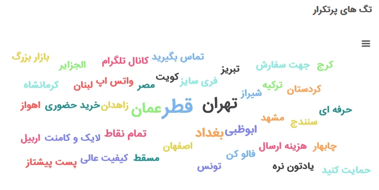 کلیدواژههای مرتبط با صفحات فروش اینستاگرام از جمله جهت سفارش، بازار بزرگ و هزینه ارسال نیز با توجه به تکرار در پستها برجسته و در ابرکلمات مشخص شده است.