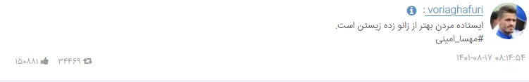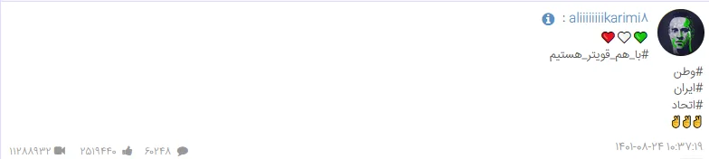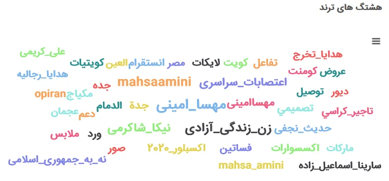 ۳. هشتگ مهسا امینی با نگارش و زبانهای مختلف نه تنها به عنوان پرتکرارترین هشتگ جریان ناآرامیها در بسترهای مختلف توئیتر، تلگرام و اینستاگرام مطرح شد بلکه به نوعی به اسم رمز براندازان در مجازی بدل شد به نحوی که هر محتوای اعتراضی و براندازی در این فضا با هشتگ مهسا امینی همراه بود و این اتفاق علاوه بر تحلیل کیفی در بالابردن کمی این هشتگ نیز بسیار موثر بود.