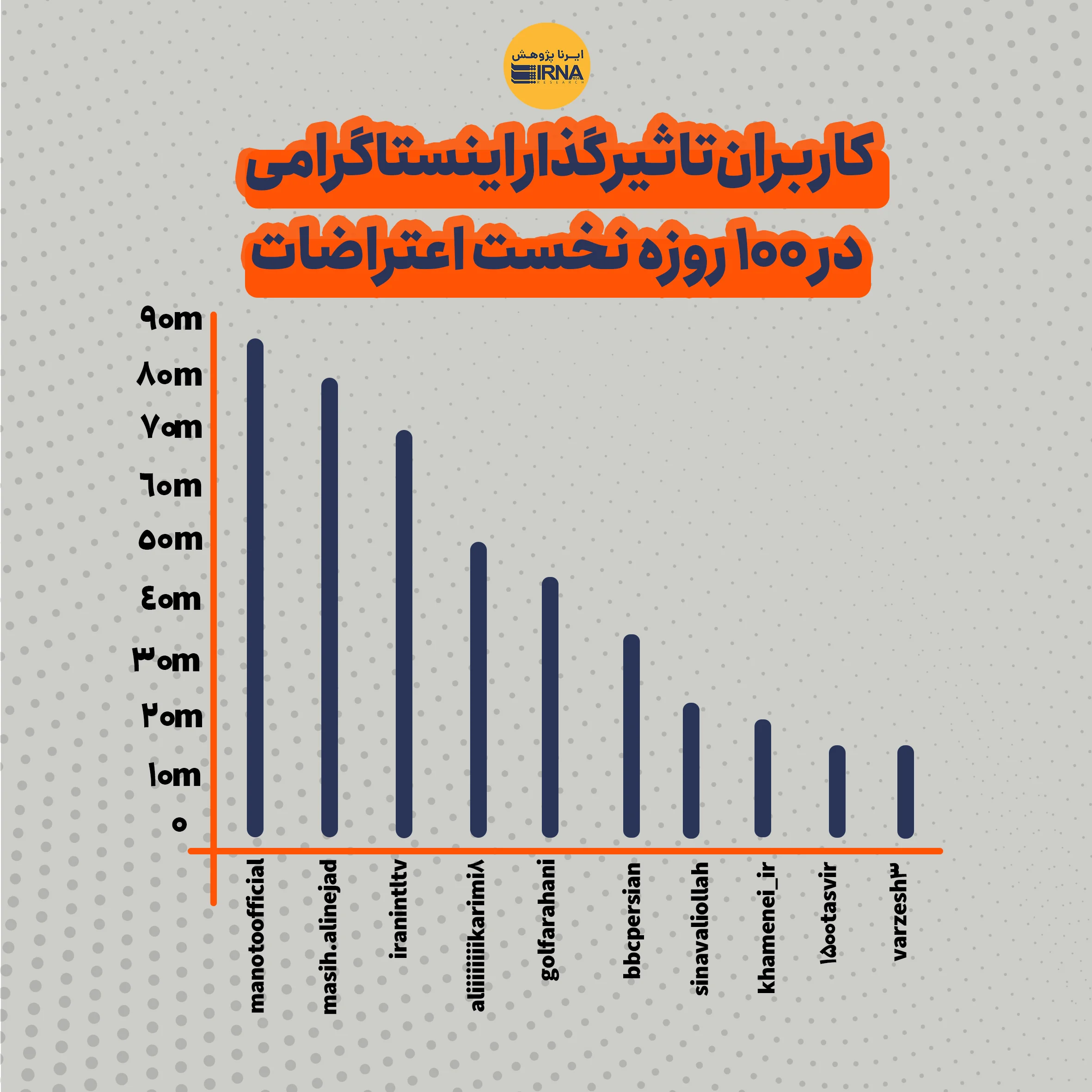در میان صفحات خبری ایران اینترنشنال، بیبی سی فارسی، ۱۵۰۰ تصویر و ورزش سه بیشترین بازدید را از مخاطبان اینستاگرامی خود دریافت کردند این در حالی است که از میان صفحات شخصی بعد از مسیح علینژاد به ترتیب علی کریمی، گلی فراهانی، سینا ولیالله با ۴۹ و ۴۳ و ۲۷ میلیون، تاثیرگذارترین صفحات این پلتفرم بودند که جملگی به انتشار مطالب براندازانه و مخالف نظام پرداختند.