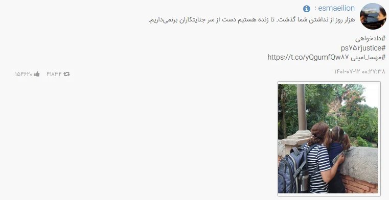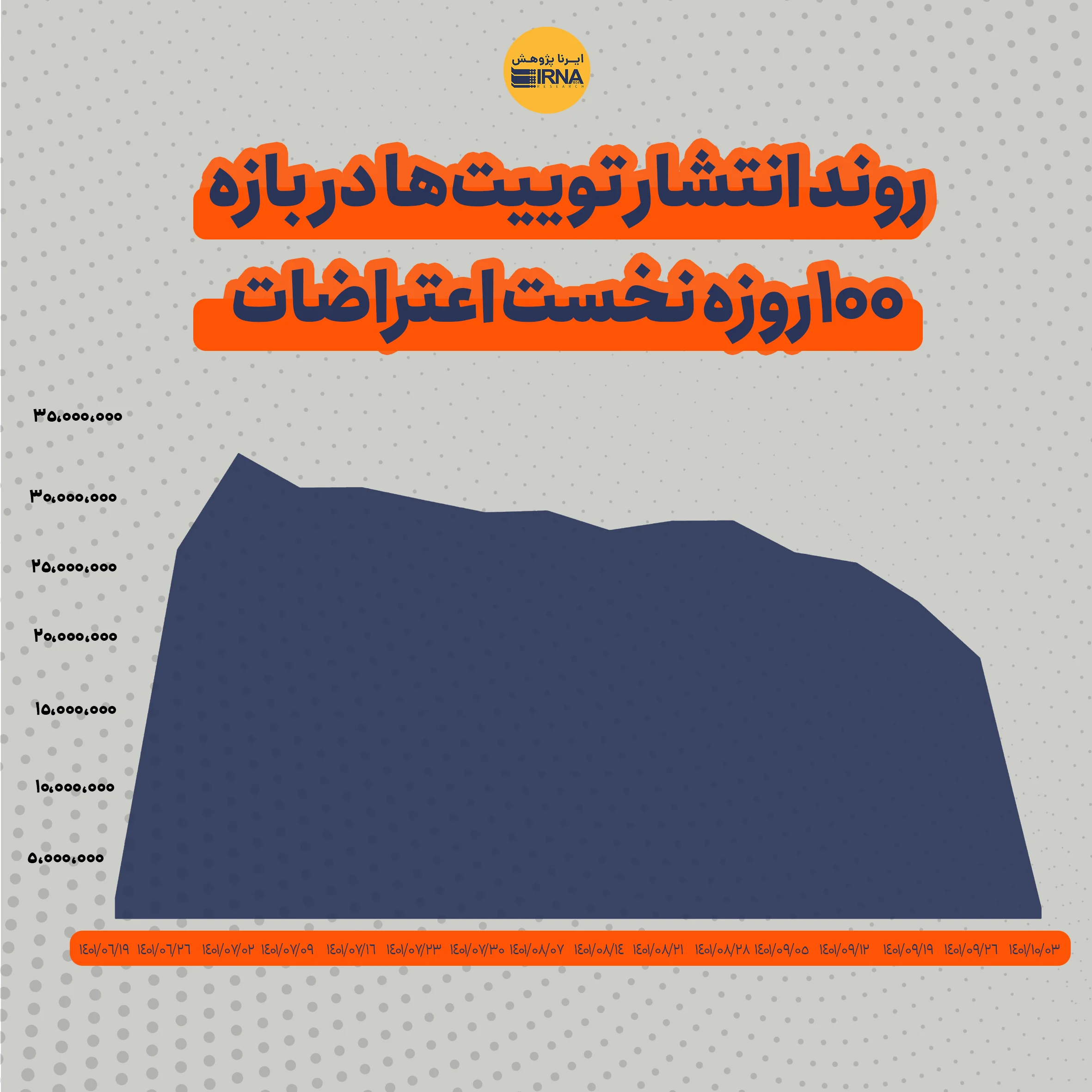روند انتشار محتوای توئیتری در بازه زمانی ۱۰۰ روزه نخست اعتراضات از حجم قابل توجه دادهها حکایت دارد به طوری که توئیتر فارسی را یکی از فعالترین پلتفرمهای تولیدمحتوا پیرامون حوادث پس از درگذشت مهسا امینی تبدیل کرد. این حجم بالای تولیدمحتوا تا اواخر آذر ماه نیز ادامه داشت و بیشترین تمرکز معترضین و براندازان با تاکید روی انتشار هشتگ مهسا امینی صورت گرفته است.