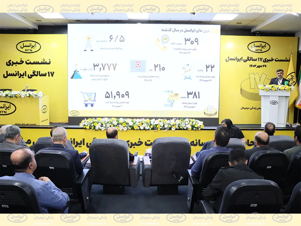 نشست خبری هفدهمین سالروز راهاندازی شبکه تلفنهمراه ایرانسل، صبح امروز شنبه ۲۹ مهر ۱۴۰۲، در ساختمان مرکزی ایرانسل و با حضور بیژن عباسیآرند مدیرعامل ایرانسل، جمعی از معاونان، مدیران کل و مدیران ارشد ایرانسل و با حضور اهالی رسانه، برگزار شد.