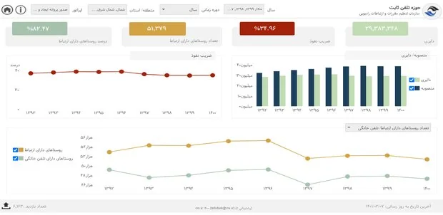 همچنین طبق این گزارش، تعداد ۴۷ هزار و ۲۵۱ روستا در کشور که ۷۵ درصد روستاها را تشکیل میدهند دارای تلفن خانگی هستند و ۲۵ درصد روستاها هنوز به تلفن خانگی مجهز نشدهاند. سال ۹۹ تعداد روستاهای دارای تلفن خانگی ۴۷ هزار و ۸۳۷ روستا اعلام شده بود.