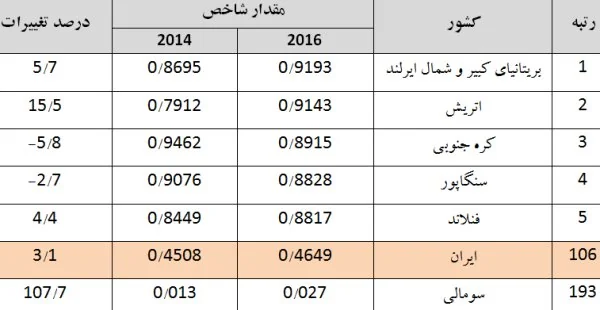 براساس داده‌های اعلام‌شده از سوی دپارتمان امور اقتصادی و اجتماعی سازمان ملل متحد (UNDESA) برای سال ۲۰۱۶ میلادی، کشورهای انگلیس، اتریش،کره، سنگاپور، فنلاند و سوئد بالاترین میزان شاخص EGDI را در جهان به خود اختصاص دادند و در این رتبه‌بندی جهانی، ایران رتبه ۱۰۶ جهانی را به دست آورده که نسبت به سال ۲۰۱۴ یک رتبه تنزل یافته است.