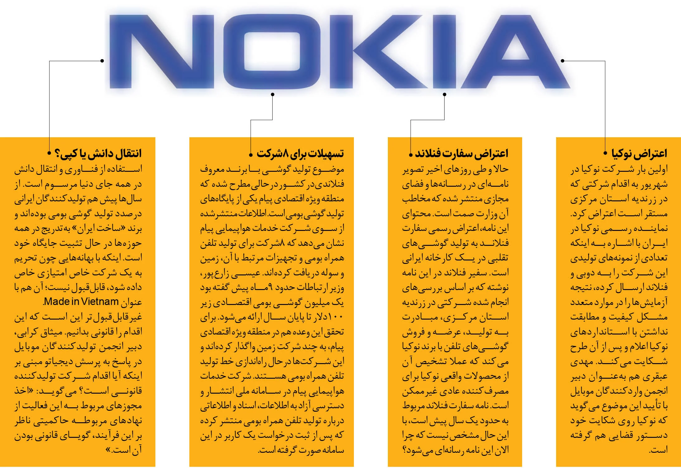به گزارش روزنامه همشهری، با انتشار تصویر نامه معترضانه سفارت فنلاند به وزارت صمت مبنی بر تولید گوشیهای تقلبی منتسب به شرکت نوکیا یکبار دیگر توجه رسانهها به این موضوع جلب شد.
