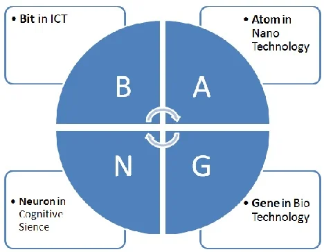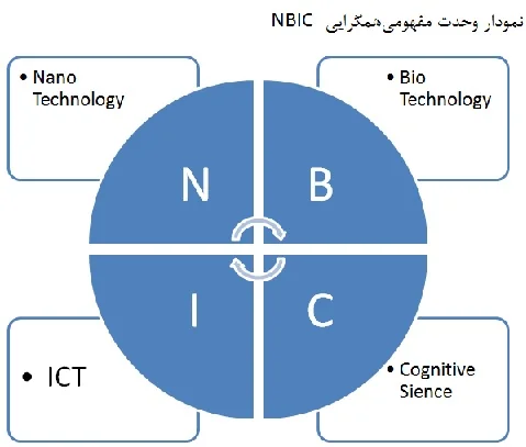 به زودی، برنامههای اجرایی این همگرایی در قالب اختصار و مفهومی جدید مطرح شد: این اختصار، عبارت است از: NBIC که از ترکیب حرف اول حوزههای علمی/فنیِ “نانو-بایو-اینفو-کُگنو” (nano-bio-info-cogno) ساخته شده است.