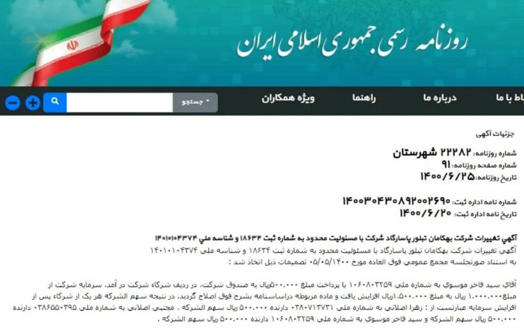 براساس گزارش خبری مذکور، شرکت بهکامان تبلور پاسارگاد معروف به بهکام کوین در ۲۹ خرداد ۱۴۰۰ به شماره ثبت ۱۸۶۳۴ و به شناسه ملی ۱۴۰۱۰۱۰۴۳۷۴ تاسیس شد، که براساس آخرین آگهی تغییرات این شرکت در ۲۵ شهریور سال اخیر روزنامه رسمی جمهوری اسلامی ایران، مجموع سرمایه آن با مدیریت سه نفر تنها ۱۵۰ هزار تومان بود.