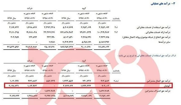 به گزارش «نود اقتصادی» با این حال بررسی صورت مالی شرکت مخابرات نشان میدهد این شرکت در سال ۹۷ از آبونمان تلفن ثابت ۳۴۶ میلیارد تومان و در ۶ماهه اول امسال نیز ۷۰ میلیارد تومان درآمد داشته است.