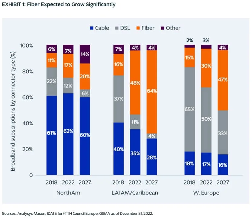 Sources: Analysys Mason, IDATE forFTTH Council Europe, GSMA as of December 31, 2022.