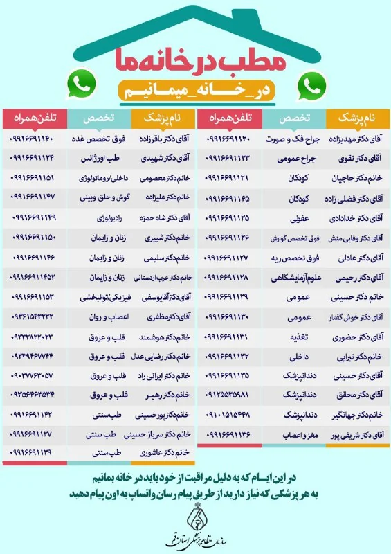 رئیس سازمان نظام پزشکی استان قم تصریح کرد: یکی از موضوعاتی که مردم به آن نیاز دارند، مراجعه به پزشک است که به منظور جلوگیری از خروج مردم از منازل، طرح مطب در خانه را راه اندازی کرده تا همشهریان بتوانند از طریق پیام رسان واتساپ با پزشکان ارتباط برقرار کرده و سئوالات خود را بپرسند.