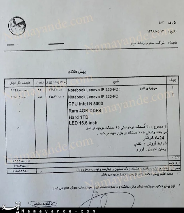 باوجود تکذیب دستور آذری جهرمی به یکی از اپراتورها مبنی بر خرید 200 لپ تاپ برای نهاد ریاست جمهوری، «پایگاه خبری نماینده» سند این دستور وزیر ارتباطات را منتشر کرد.