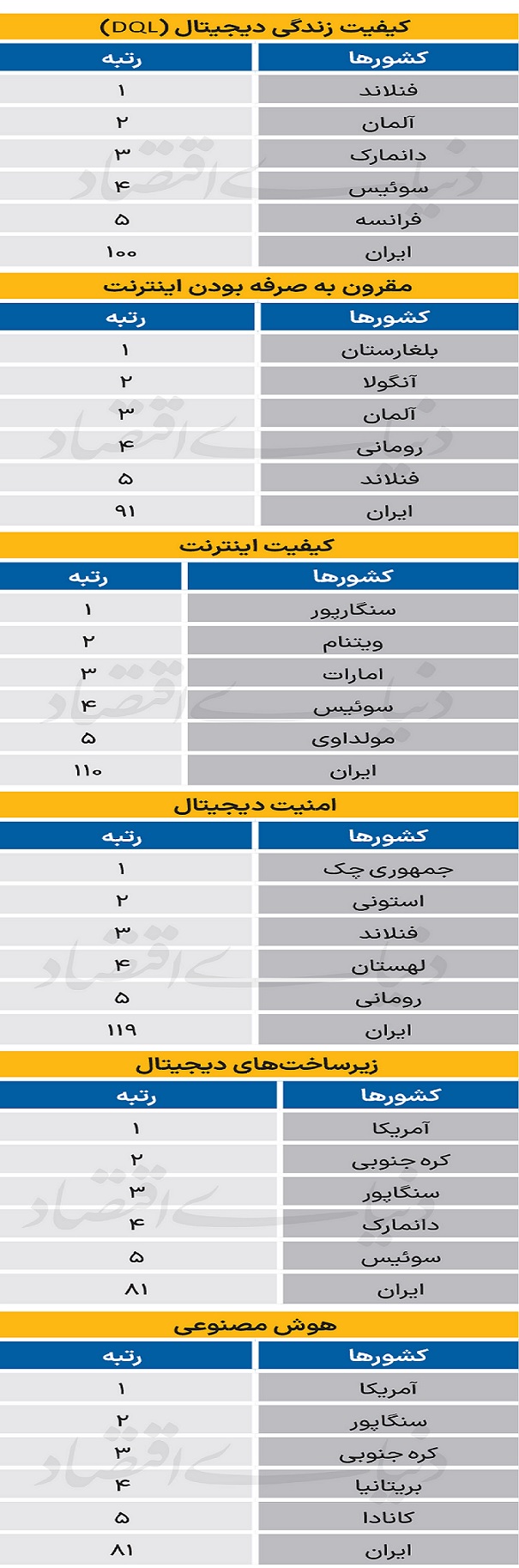 رتبههای پایین ایران در شاخصهای متعدد زندگی و اقتصاد دیجیتال