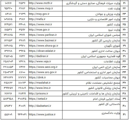 لیست درگاه های دولتی به ترتیب رتبه کشوری