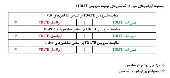 وضعیت اپراتورهای سیار در شاخصهای کیفیت سرویس TDLTE: