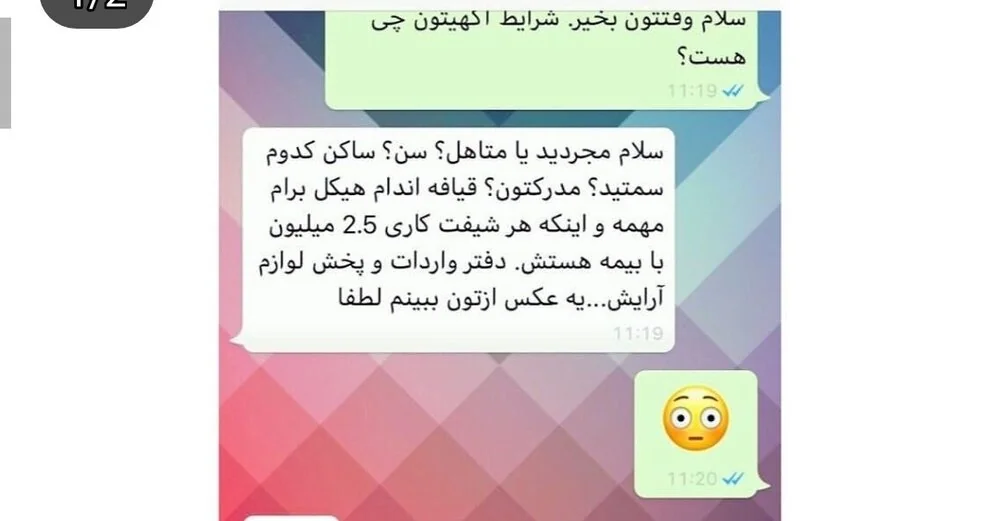 اما این تمام ماجرا نیست و قطعاً با ارسال پیام یا تماس با این آگهیها، با موضوعات بسیار عجیبتری هم مواجه خواهید شد و تازه این ابتدا راه کشف پشت پرده این آگهیها خواهد بود؛ تبلیغاتهایی که ثابت میکند اشتغال و جذب نیروی کار به عنوان فرعیترین مقصود آنها است و سو استفاده ابزاری و جنسی از زنان هدف اصلی آگهی دهندهها است.