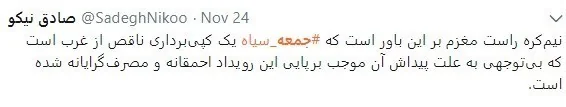 مصداق این ادعا را در شبکههای اجتماعی و با مشاهده ناسزاهای مردمی که تجربه خرید در این ایام را دارند، میتوان یافت که معتقدند فروشگاههای اینترنتی کشور ما روی جمعه سیاه را سیاهتر کردند.