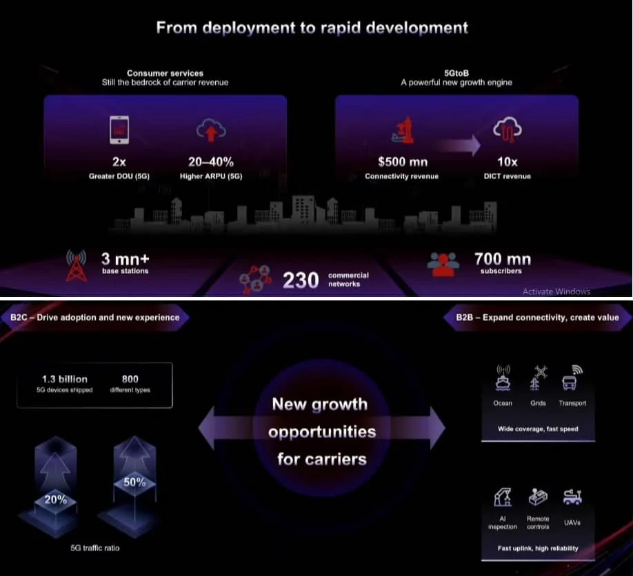 در این رویداد «کن هو» از مدیران ارشد هواوی با بیان اینکه 5G سریعتر از هر نسل قبلی فناوری تلفن همراه رشد کرده است، آمار جالبی در این رویداد ارایه کرد و گفت: تنها در سه سال، ما شاهد پیشرفت قابل توجهی در استقرار شبکه، خدمات مصرف کننده و کاربردهای صنعتی بوده‌ایم.