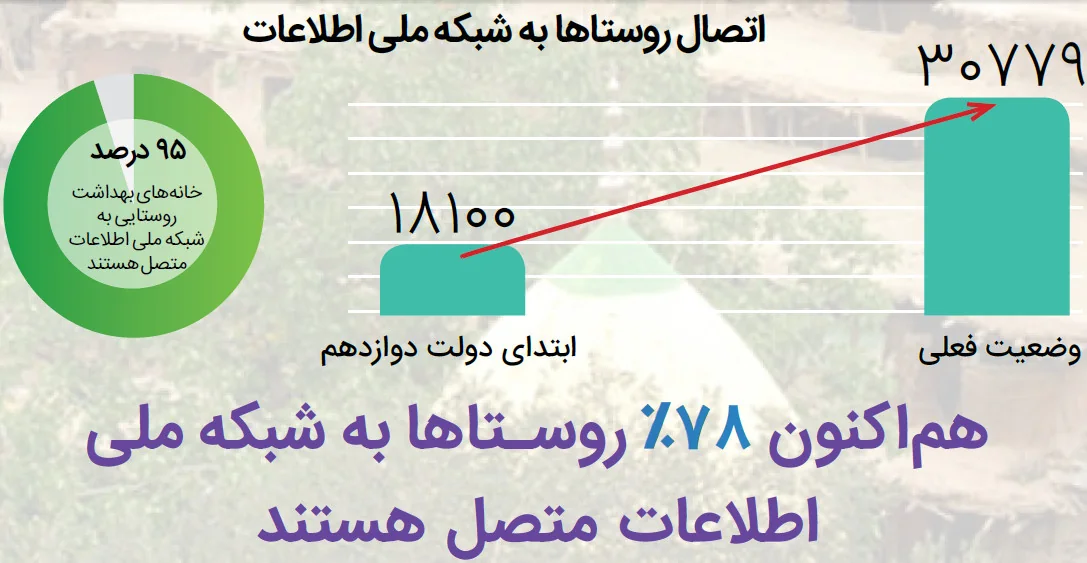 - طبق نتایج سرشماری سال ۱۳۹۵، تعداد روستاهای کشور ۶۲۲۸۴ روستا اعلام شده است. حال مشخص نیست چگونه در صفحه ۱۳ گزارش با اعلام تعداد ۳۰۷۷۹ روستا، ادعا شده که ۷۸% روستاهای کشور به شبکه ملی اطلاعات متصل هستند! بر فرض عدم عددسازی، تنها احتمالی که میرود این است که حداقلی برای جمعیت روستاها قائل شده باشند و مثلاً بگویند ۷۸% روستاهای دارای بیش از ۱۰۰ نفر جمعیت که در این حالت نیز بدیهی است باید اطلاعات به صورت کامل بیان شود.