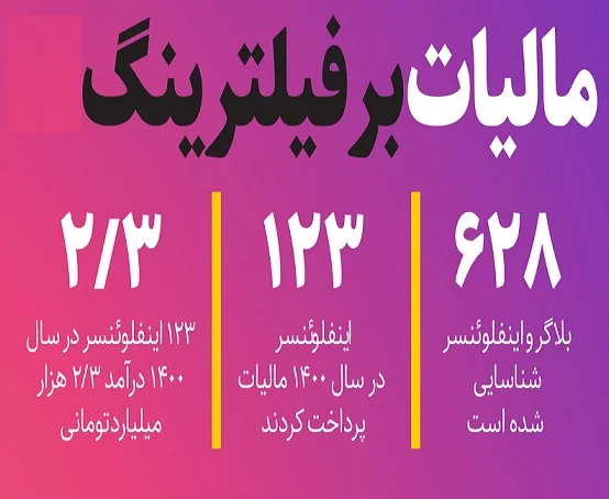 در عین حال از سال ۱۴۰۱ تعدادی از شبکه های مجازی و پیامرسان ها به طور قانونی فیلتر و اخذ مالیات از این شبکه ها از روندهای قانونی خارج و محدود شد. با این حال روز گذشته، پشوتن پورپزشک عضو هیئت مدیره اتحادیه کسب و کارهای مجازی مدعی شده است که «سازمان مالیاتی بر اساس فالوئر اینستاگرام از بلاگرها مالیات میگیرد، در حالی که اینستاگرام در ایران فیلتر است.»