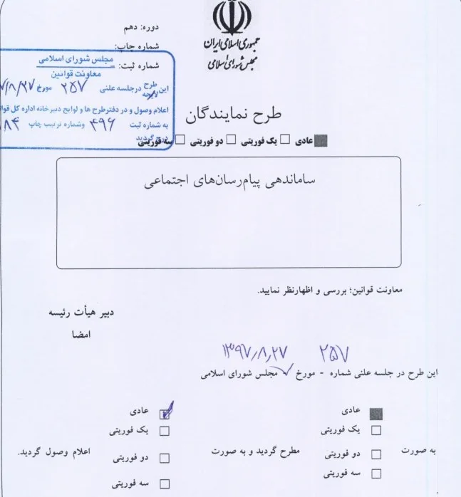 متن طرح ساماندهی پیام‌های اجتماعی به‌شرح زیر است؛