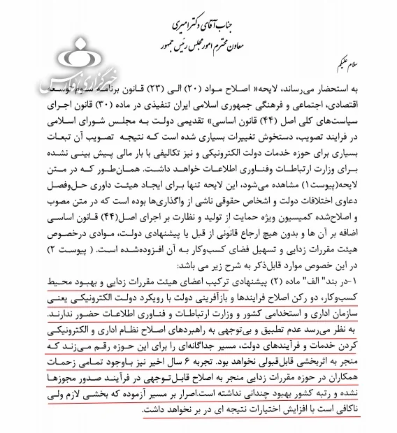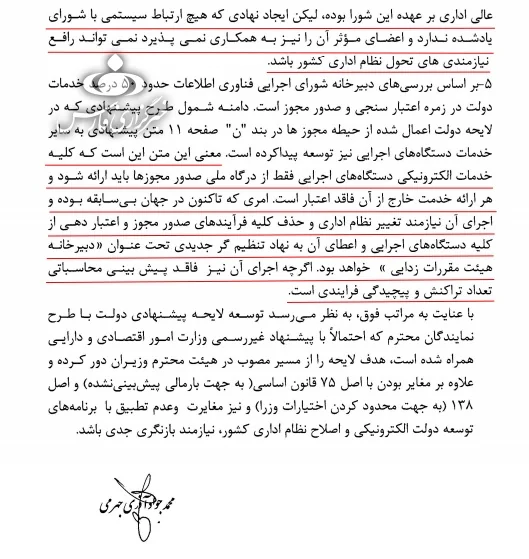 وزیر ارتباطات و فناوری اطلاعات طی نامه‌ای به معاون امور مجلس رئیس جمهور اعلام کرد: پیشنهاد درگاه مجوزهای وزارت اقتصاد مورد تایید شورای اجرایی فناوری اطلاعات نیست و خدمات دستگاه‌های اجرایی را دچار مشکل خواهد کرد.