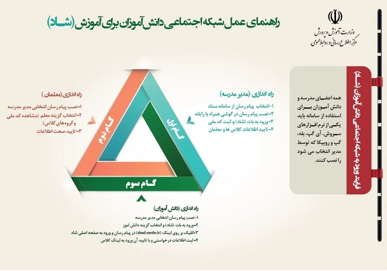 راهنمای عمل شبکه اجتماعی دانشآموزان (شاد) برای آموزش و فرایند ورود به این شبکه اجتماعی به صورت اینفوگرافی ارائه شد.