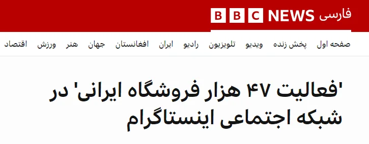 BBC، شبکه وابسته به سازمان اطلاعاتی MI6 انگلیس در گزارشی مدعی شده بود ۴۷ هزار فروشگاه ایرانی در اینستاگرام فعالیت می‌کنند. همچنین گفته بود تعداد کلی صفحات بالای ۵ هزار دنبال کننده در ایران حدود ۴۰۰ تا است.