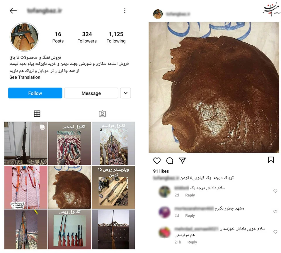 نکته مهم دیگر، خرید و فروش‌هایی است که در  فضای مجازی و اینستاگرام جریان دارد و مستقیما بر جان و امنیت مردم اثرگذار است. از فروش انواع سلاح سرد، گرم و جنگی گرفته تا فروش مواد مخدر و مشروبات الکلی؛ از فروش کالاهای قاچاق گرفته تا فروش انواع مدارک جعلی شامل کارت ملی و کارت خودرو.