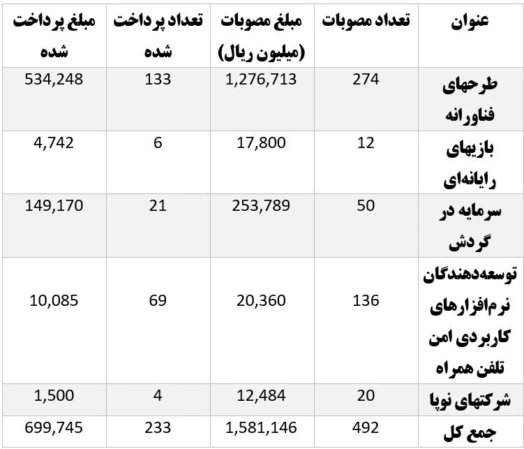 به گزارش تسنیم به منظور ارتقاء و توسعه کاربرد فناوری اطلاعات و ارتباطات کشور و تولید برنامه‌‌های نرم‌افزاری و ایجاد زمینه صدور خدمات فنی و مهندسی در زمینه ICT، وزارت ارتباطات و فناوری اطلاعات از محل وجوه اداره شده، حمایتهایی را در قالب اجرای طرحهای فناورانه، توسعه بازیهای رایانه‌ای، توسعه نرم‌افزارهای کاربردی امن تلفن همراه، اعطای تسهیلات سرمایه در گردش و نیز حمایت از شرکتهای نوپا در دولت قبل انجام داده است.