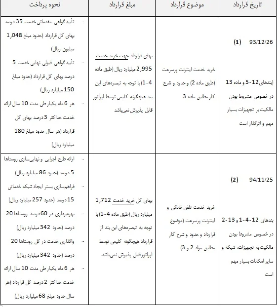 بخشی از اطلاعات مهم دو قرارداد که در سامانه کدال منتشر شده است به شرح ذیل ارائه میشود: