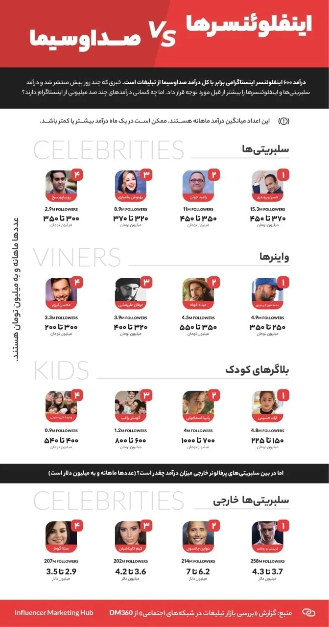 در شرایطی که اقشار مختلف مردم طبق قانون در عناوین مختلفی از جمله قانون مالیات بر درآمد مشمول مالیات می‌شوند و حتی مالیات به طور مستقیم از حقوق کارمندان و کارگرانی که درآمد بالای پنج میلیون تومان دارند، کسر می‌شود، اینفلوئنسرها با درآمدهای نجومی تاکنون هیچ مالیاتی نپرداخته‌اند.
