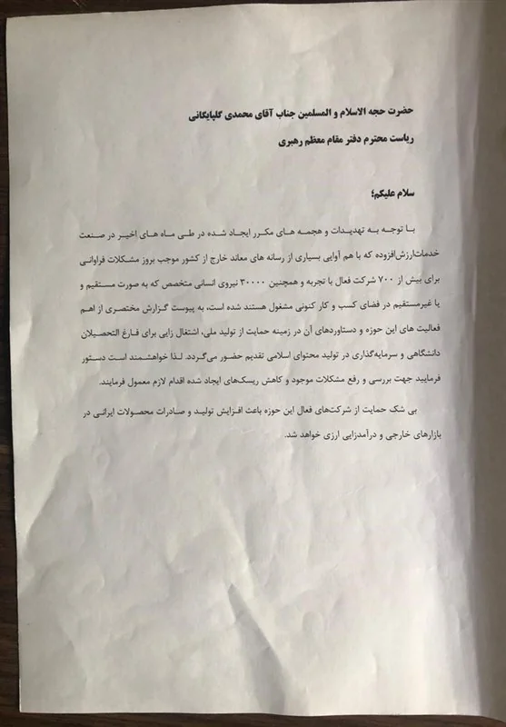 نامه ۷۵ شرکت وس به دفتر رهبری و قوه قضاییه