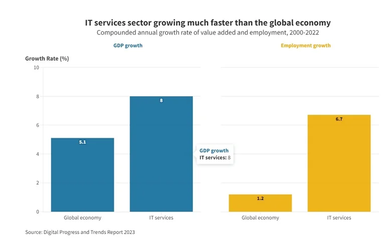 1- رشد به مراتب سریعتر خدمات بخش فناوری اطلاعات در مقایسه با کل اقتصاد جهانی