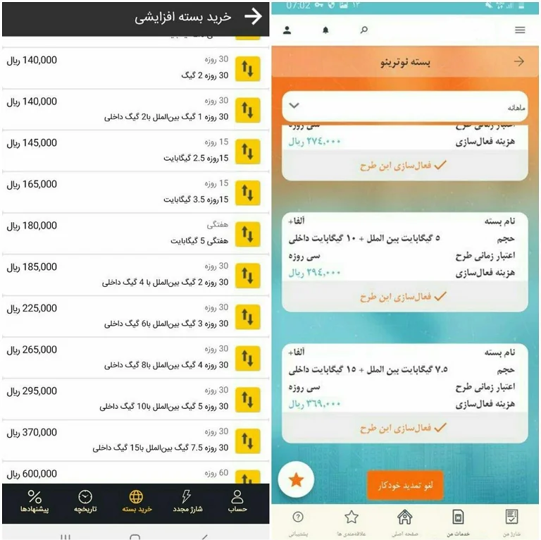 برخی از قیمت های جدید این ۲ اپراتور به شرح زیر است: