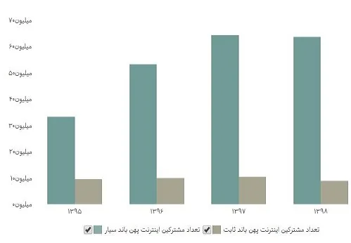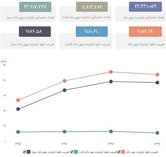 این آمار حاکی است که ضریب نفوذ اینترنت پرسرعت ثابت و سیار ایران در این دوره نسبت به سال 97 کاهش یافته است.