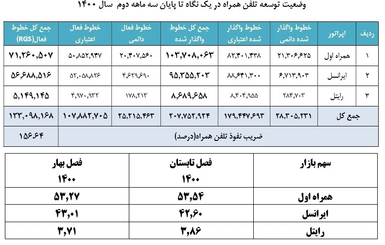 به این ترتیب که سهم بازار همراهاول از 53.27درصد در فصل بهار به 53.54درصد در فصل تابستان افزایش یافته است.